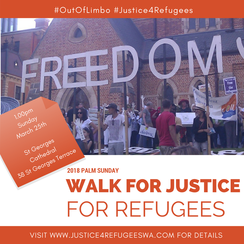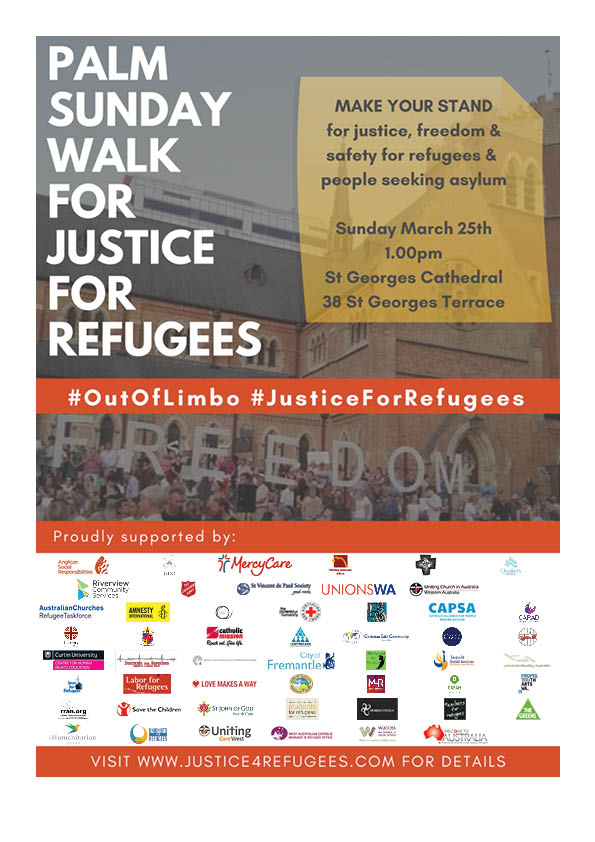 On Sunday 25th March, Perth will gather to demonstrate a broad and united movement of people and organisations who call for justice and dignity for refugees and for people seeking asylum.
