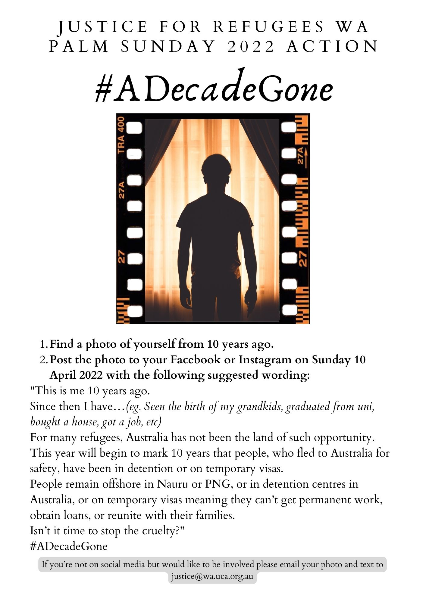 A Decade Gone is our Palm Sunday Justice for Refugees social media action that we would love you to take part in.
