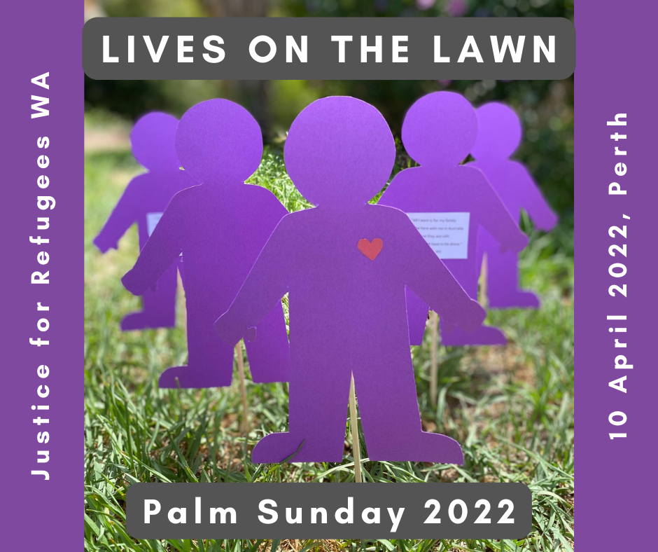 A visual display which will take place on the lawn outside St George’s Cathedral in Perth representing the number of refugees and asylum seekers currently in detention or on temporary visas in WA. Watch out for this display on Palm Sunday, 10 April 2022.